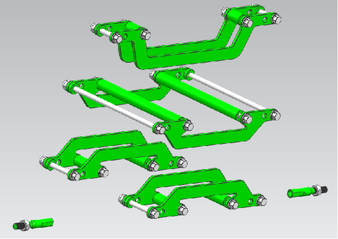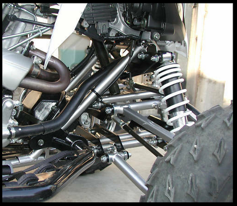 This kit includes all of the components to widen the mounts for the a-arms and the shocks. By doing this, the entire suspension moves out by two or three inches on each side, maintaining the stock ride height and suspension travel but improved with added width for stability and better handling.